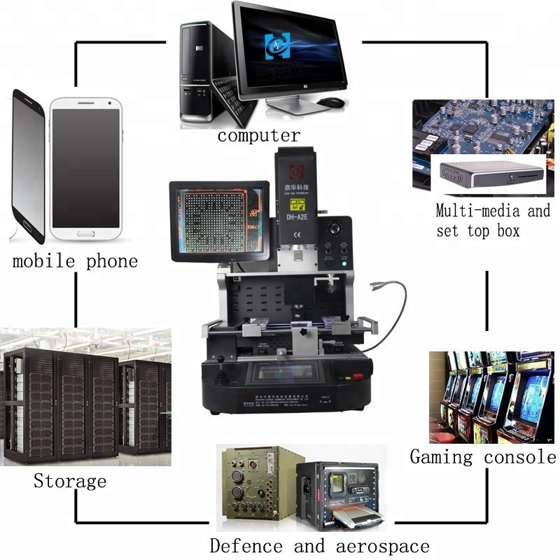 DH-A2E เป็นสถานี BGA rework ที่มีลักษณะเฉพาะตัวกล้อง CCD ความละเอียดสูงพร้อมระบบให้อาหารและเครื่องหยอดนมแบบอัตโนมัติสะดวกในการใช้งานมากขึ้น อัตราความสำเร็จในการทำ rework สูงเป็นที่ชื่นชมอย่างมากระหว่างลูกค้า