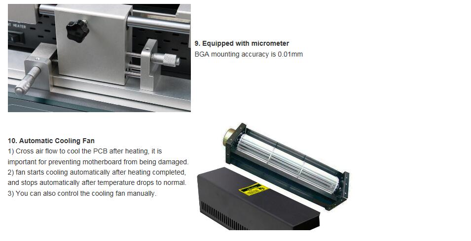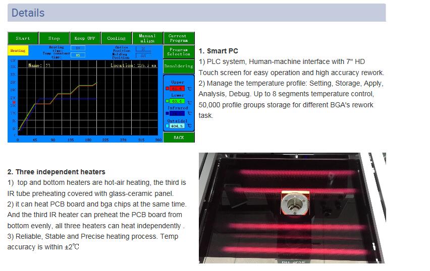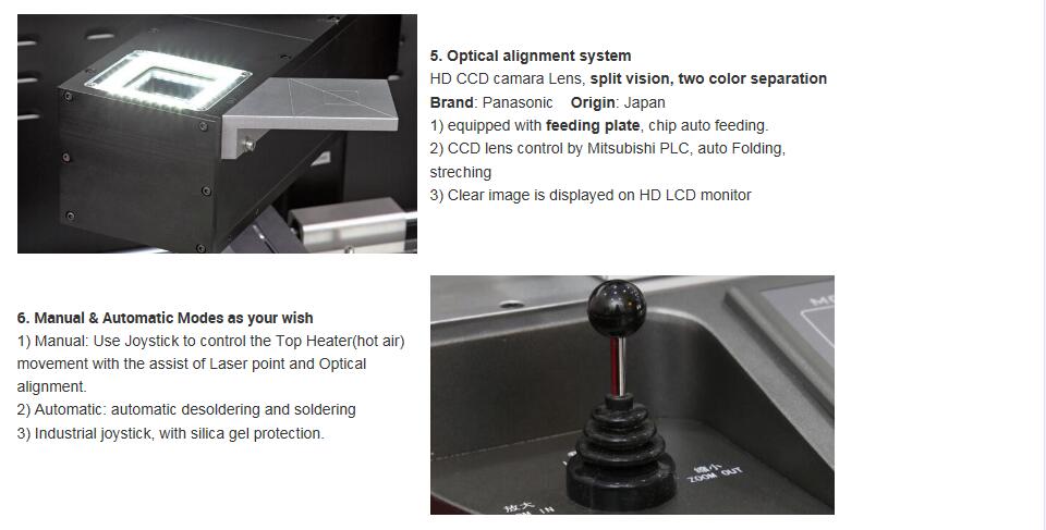 * ความถูกต้องในการติดตั้ง BGA ภายใน 0.01 มม., อัตราความสำเร็จในการซ่อมแซม 99.9%