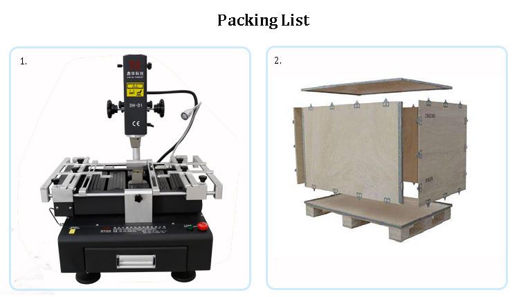 สถานีทำใหม่ BGA DH-D1 เป็นสถานีปรับปรุง BGA ที่เป็นที่นิยมที่สุดพร้อมการควบคุมหน้าจอสัมผัส, 3 โซนแต่ละส่วน, ฮีตเตอร์ 6 ด้านล่างพร้อมปรับความสูง, ความร้อนด้านบน / ล่างที่ตั้งโปรแกรมได้, ระบบกล้องความละเอียดสูง 50X, 3 เทอร์โม